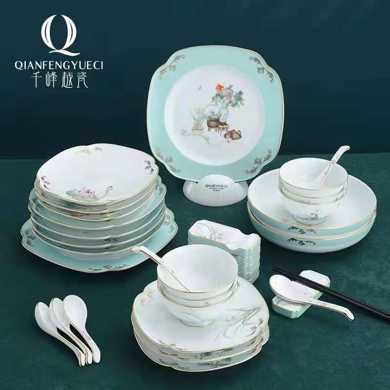 千峰翠怀古茶盅十二件套陶瓷杯水果小神仙