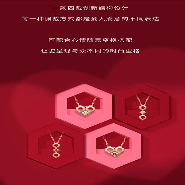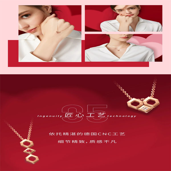 周大生钻石项链18K金玫瑰金蝴蝶结套链