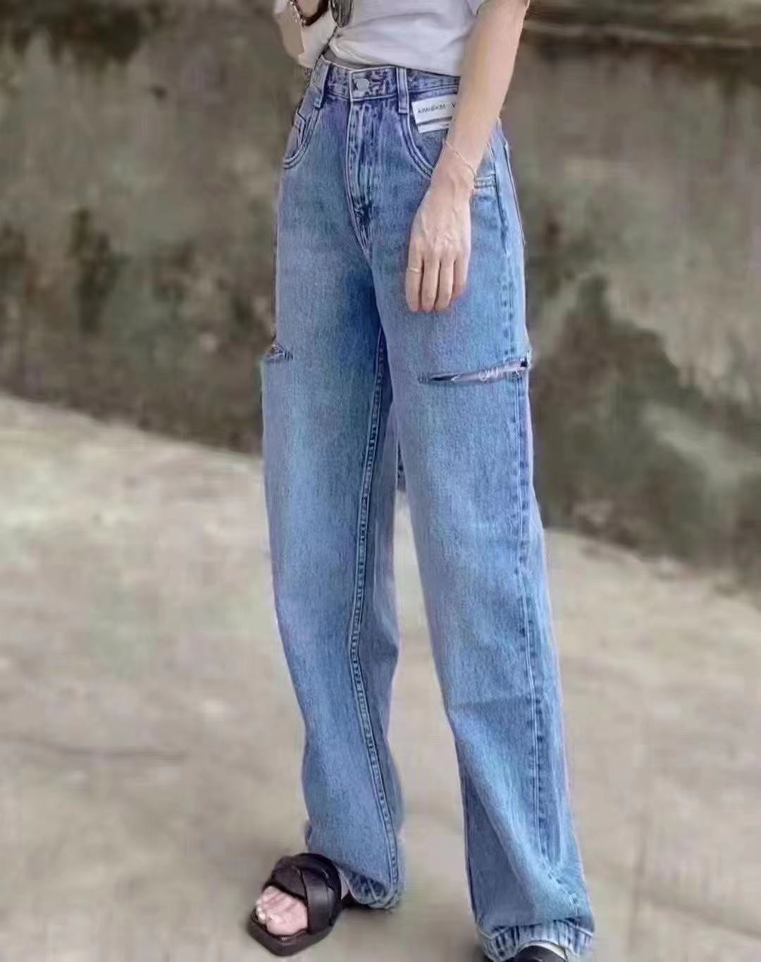 >>MOCO21秋新品KIMHEKIM联名剪口洗水牛仔阔腿裤