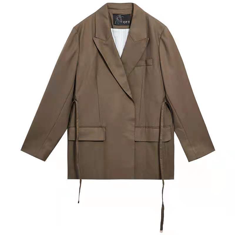 >>OTT服饰2021秋宽松系带长袖西装外套