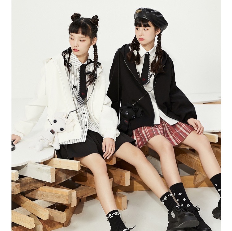 >>紫涵黑森系列2021秋装新款个性原创玩偶连帽卫衣