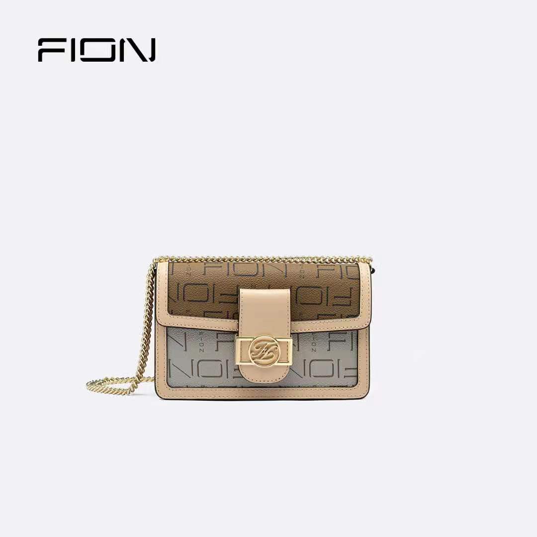 fion/菲安妮腋下包老花色女士包单肩斜跨包链条手机包豆腐小方包