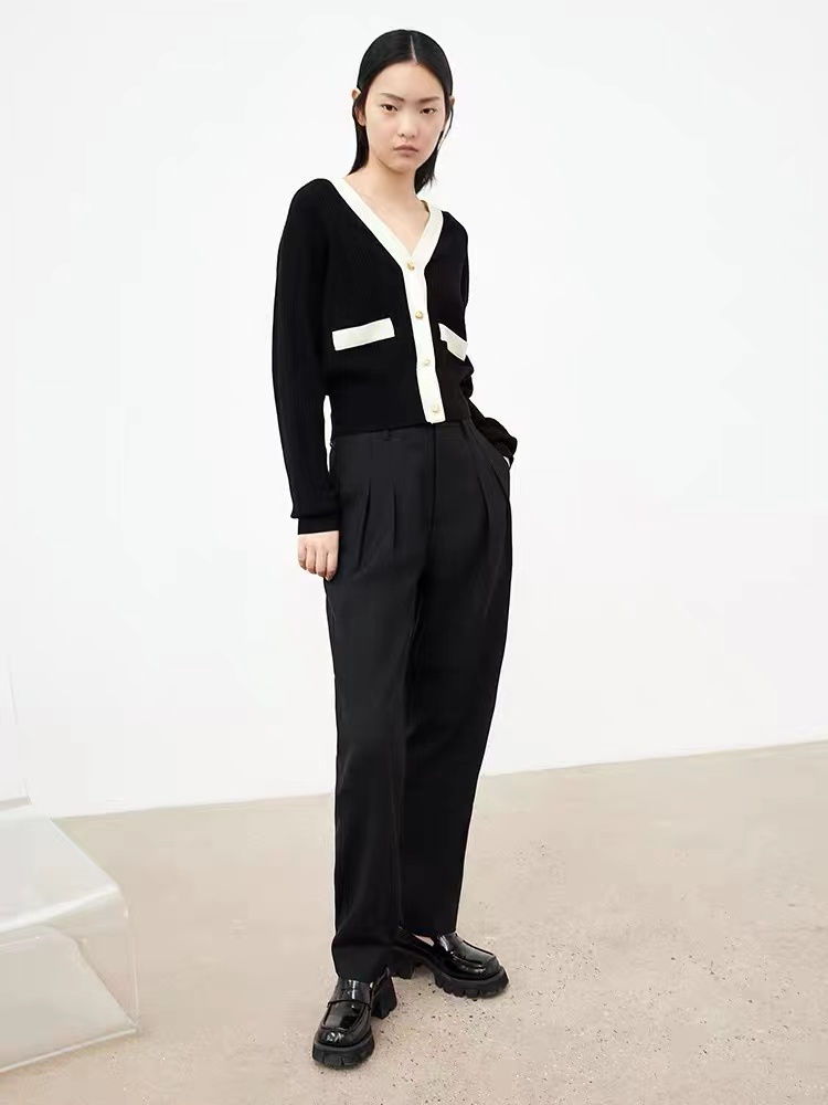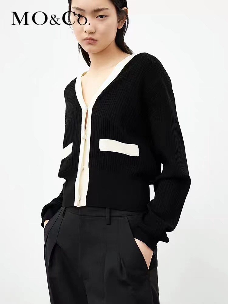 >>MO&CO2021新品金扣装饰短款针织衫JK服