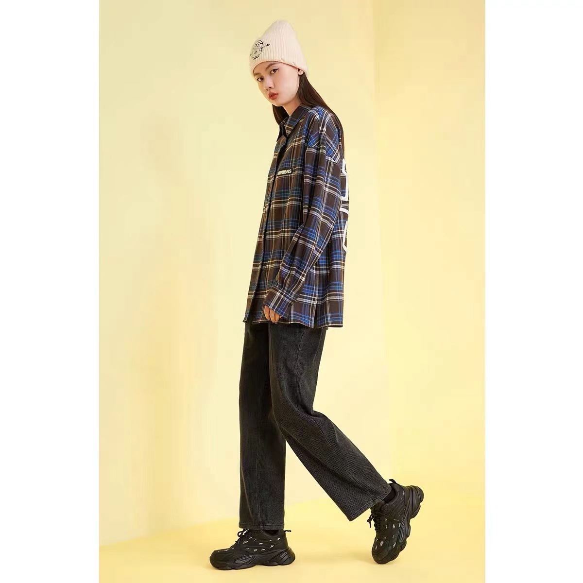 >>太平鸟小黄人合作系列蓝色格纹衬衫