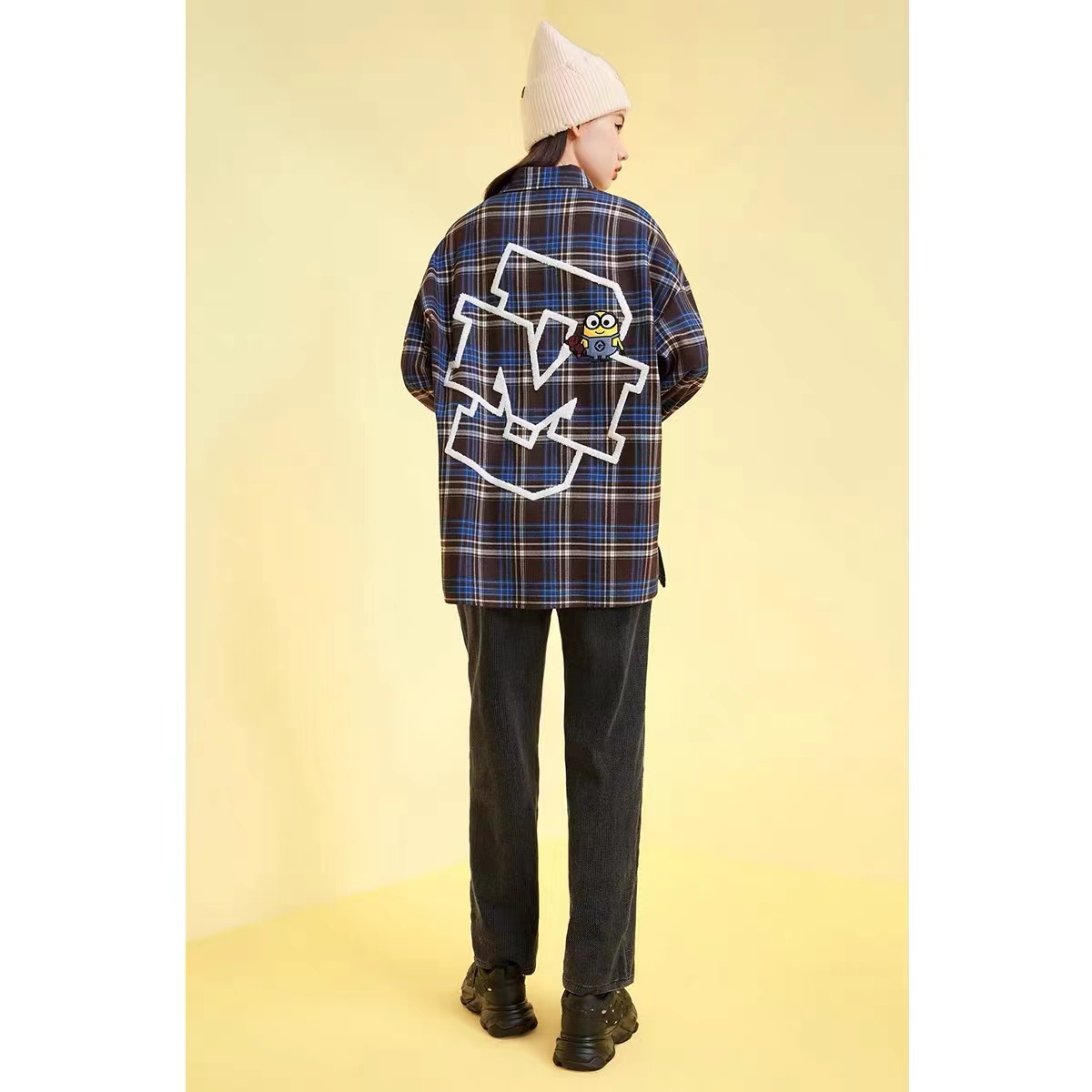 太平鸟小黄人合作系列蓝色格纹衬衫