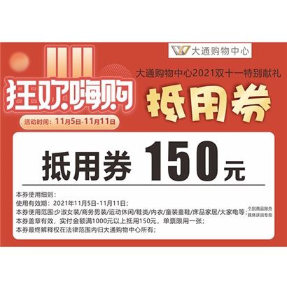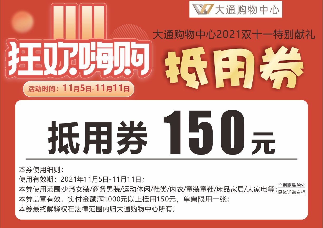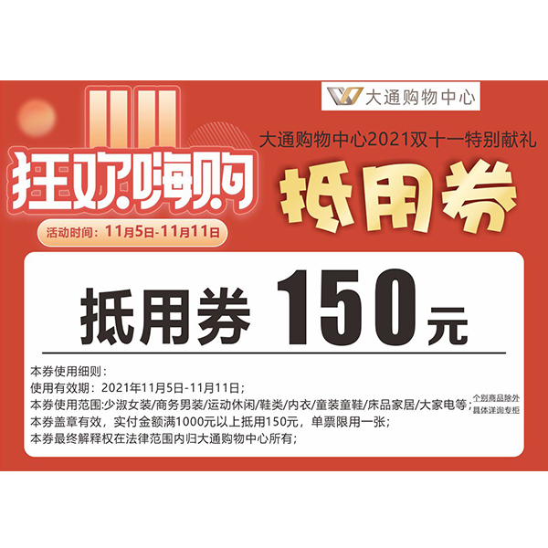 大通购物中心150元抵用券