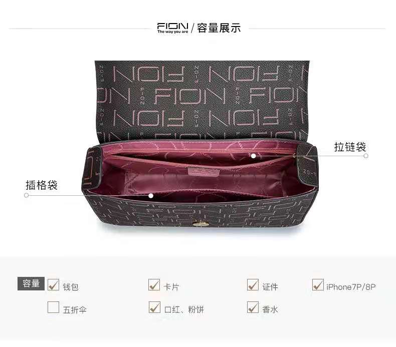 fion/菲安妮小方包女士单肩斜跨时尚洋气大容量中包