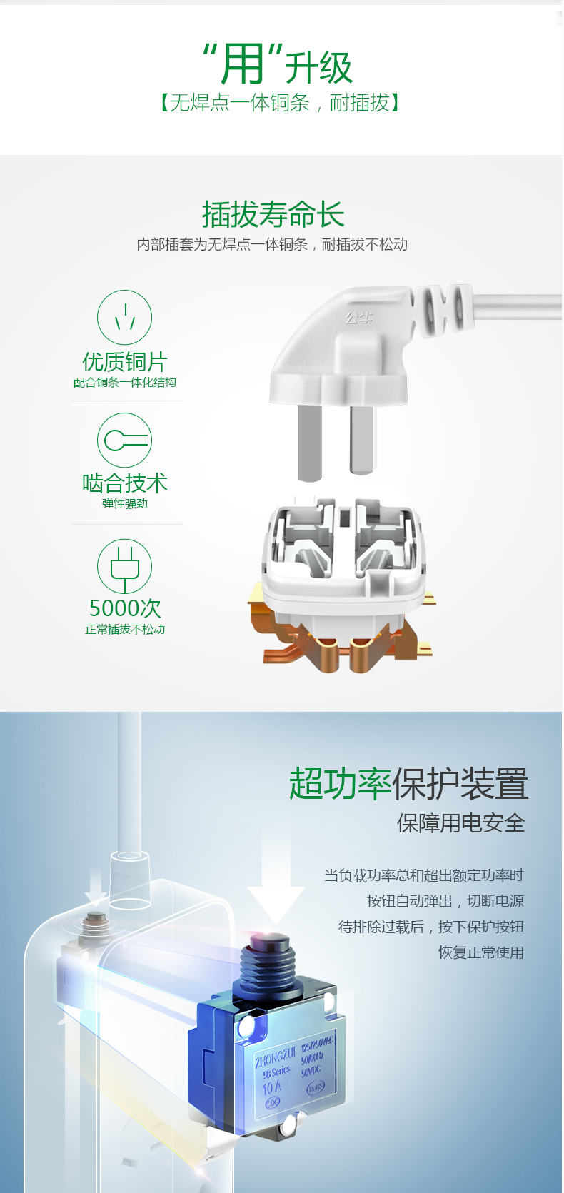 >>公牛插座插排接线板1.8米