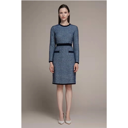 这款花纱针织连衣裙优雅百搭,简约收腰剪裁加上撞色拼接,搭配毛绒感的珠片混 色花纱,可以单穿或叠穿,轻松打造多变造型。