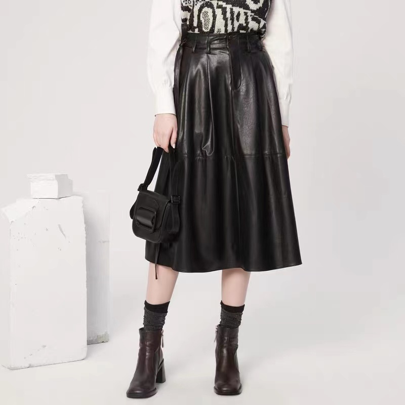 >>the MSLAN2021新品郭采洁明星同款摩登皮革半裙