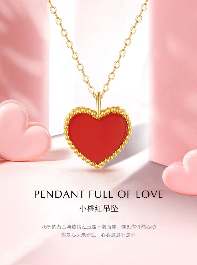 珠宝>>曼卡龙小桃红18K金镶嵌红玉髓挂坠送s925银链(专柜自提)