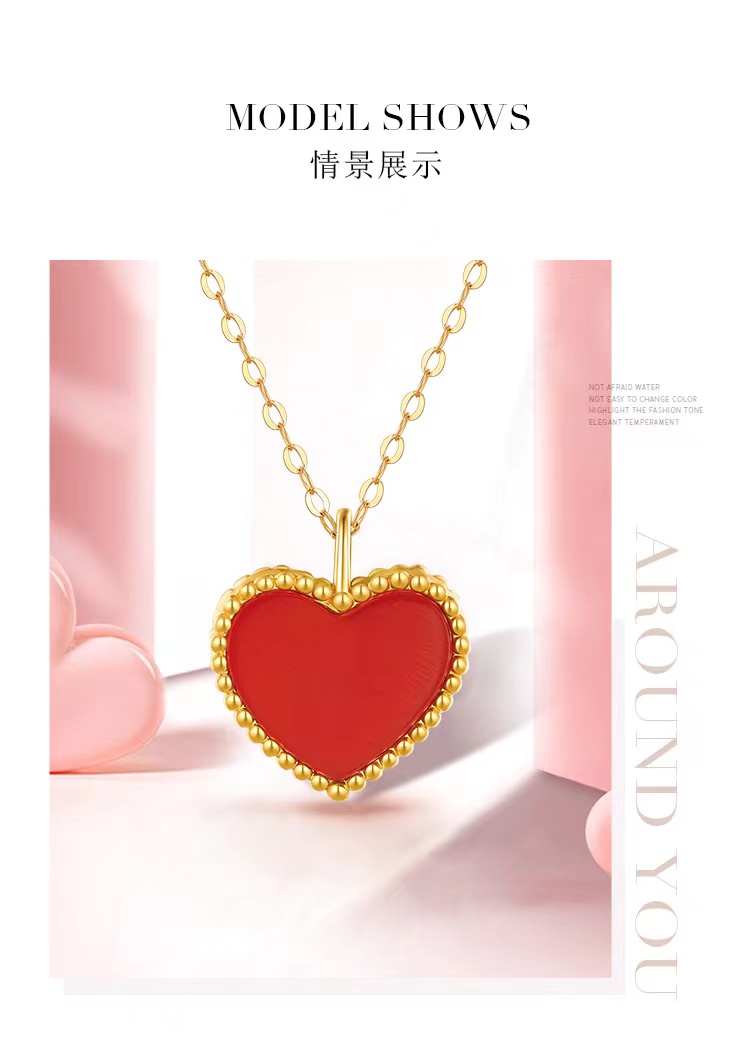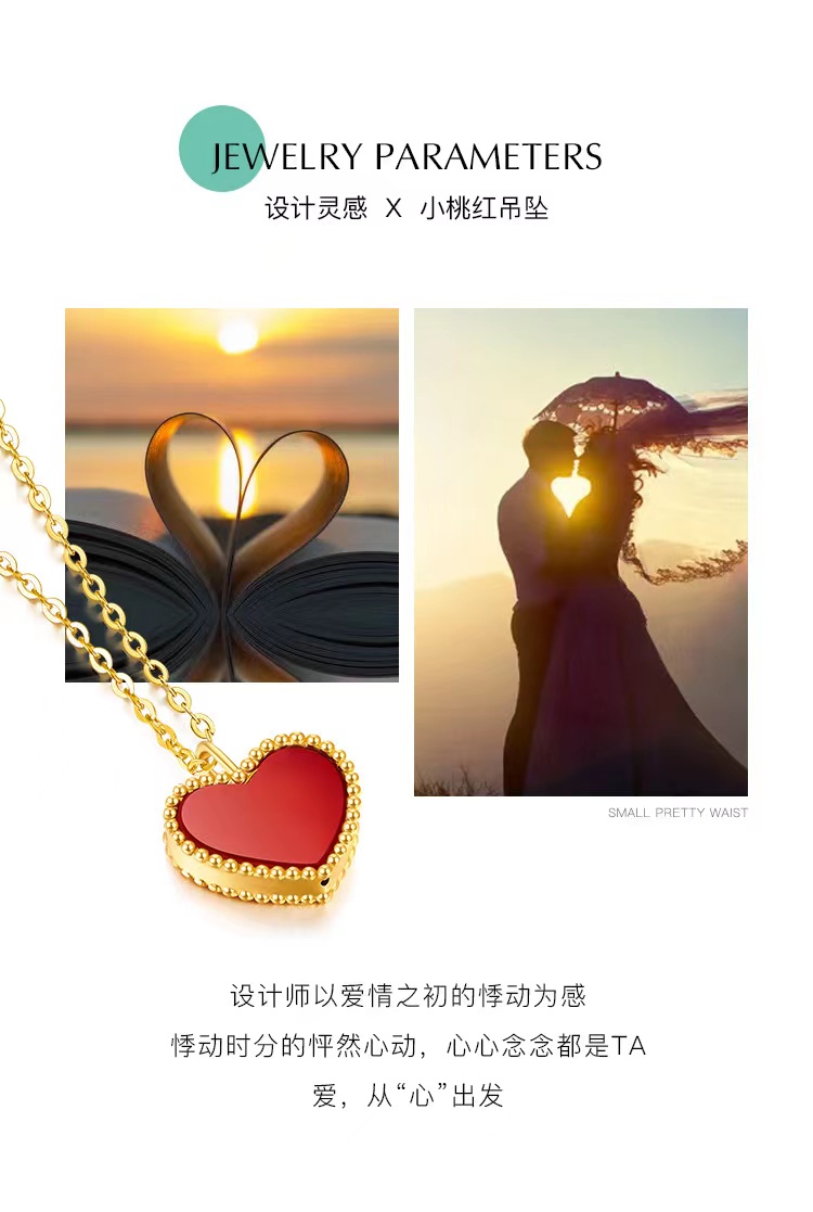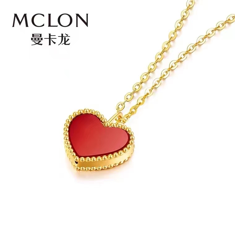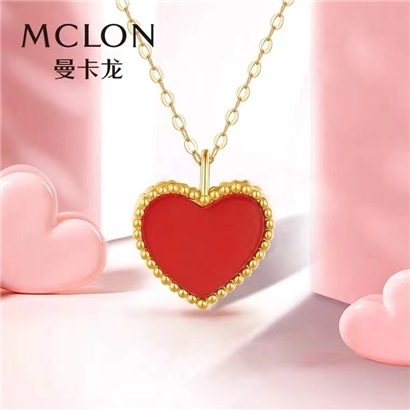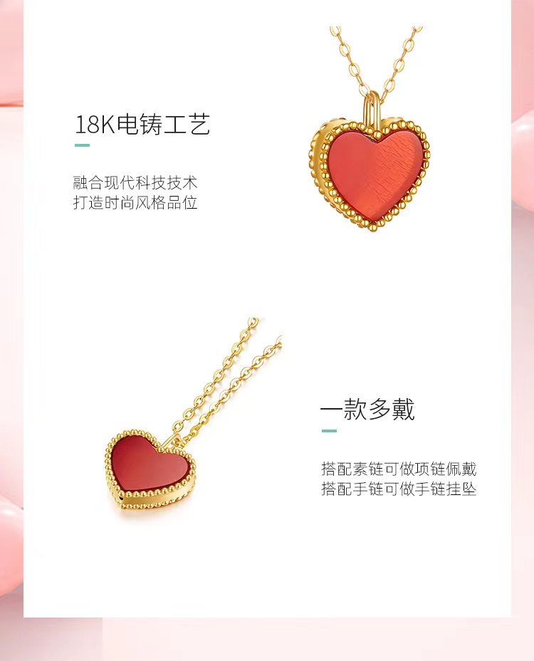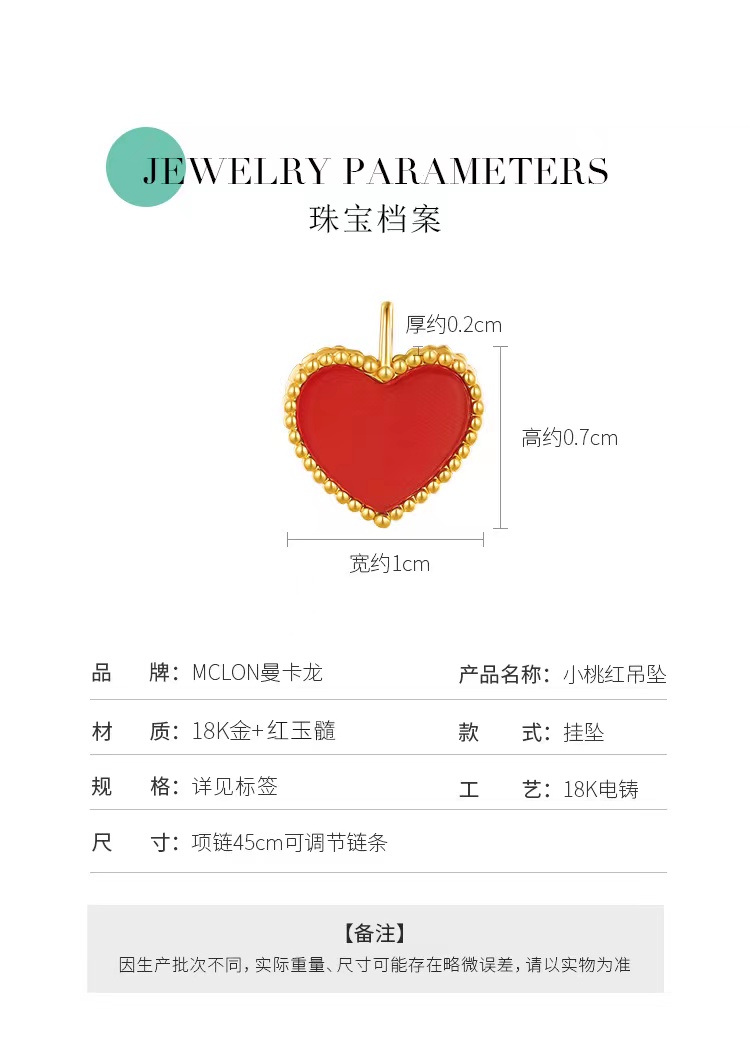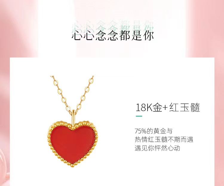 曼卡龙小桃红18K金镶嵌红玉髓挂坠送s925银链(专柜自提)