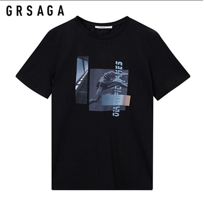 GR2020夏季黑色圆领印花短袖