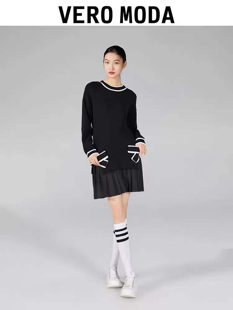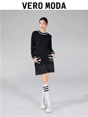 >>五折!VEROMODA蝴蝶结装饰假两件针织连衣裙