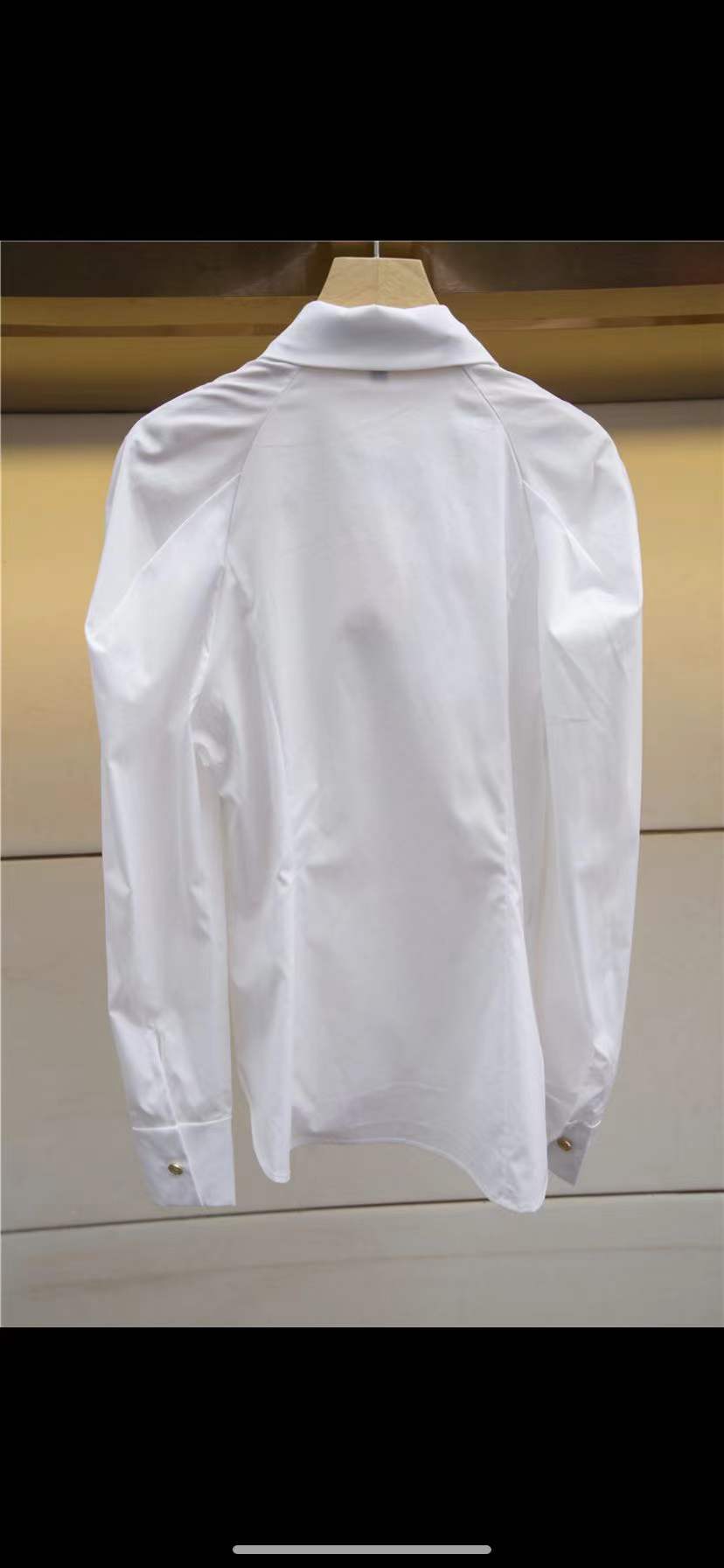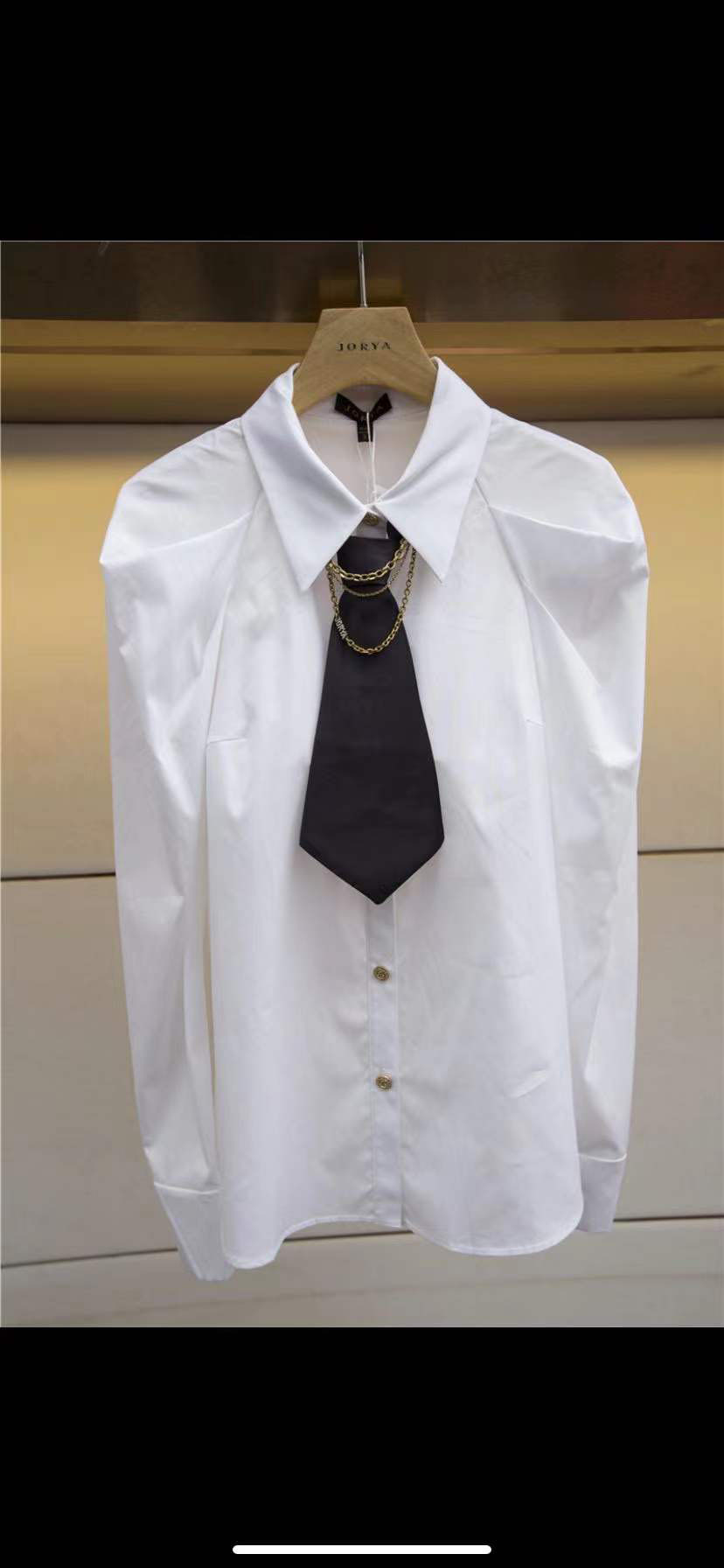 卓雅2021冬新款链条领结泡泡长袖衬衫