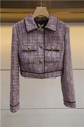 >>2022春新款长袖单排扣粗花呢短外套