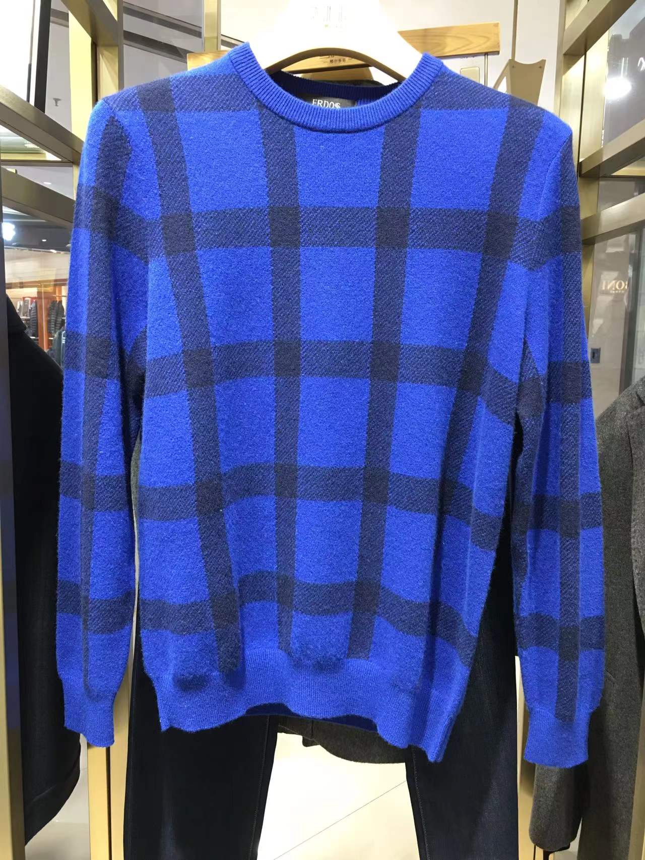 鄂尔多斯羊毛衫手感细腻丰满,蓝色格子穿上后优雅时尚