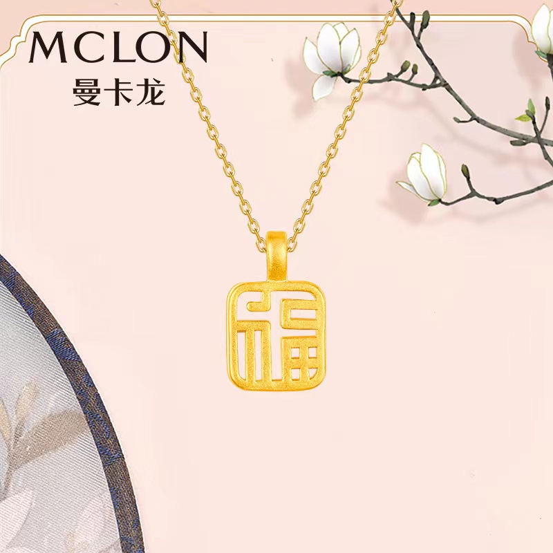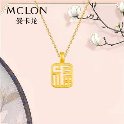 曼卡龙足金福运牌挂坠