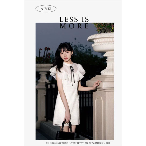 淑女装>>AIVEI 2022夏款新品蝴蝶结立领网纱荷叶边无袖复古优雅连衣裙