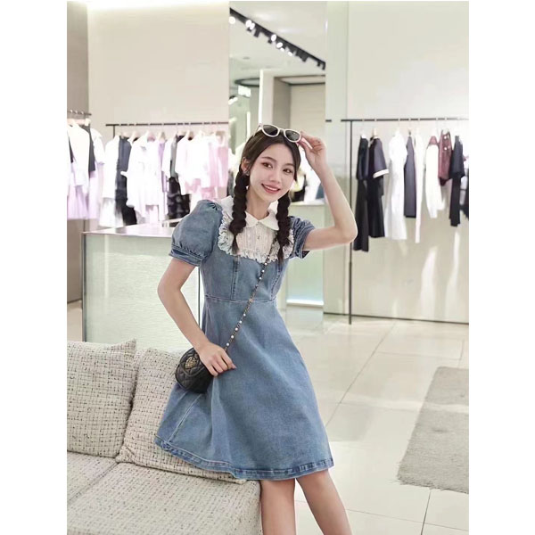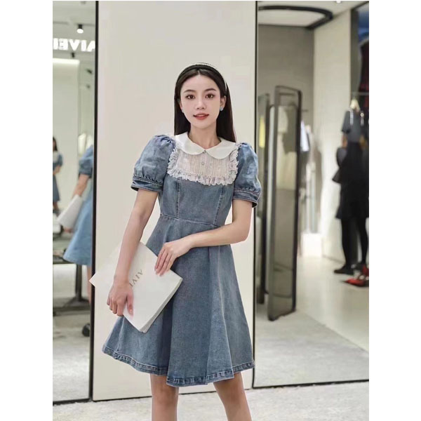 淑女装>>AIVEI2022夏季新品显瘦复古法式气质甜美牛仔连衣裙