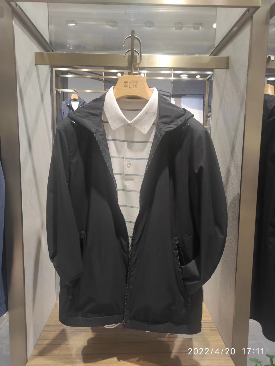 帽领纯黑色夹克,简约时尚,透气性好,100%聚酯纤维织就而成,特别的轻薄易打理,