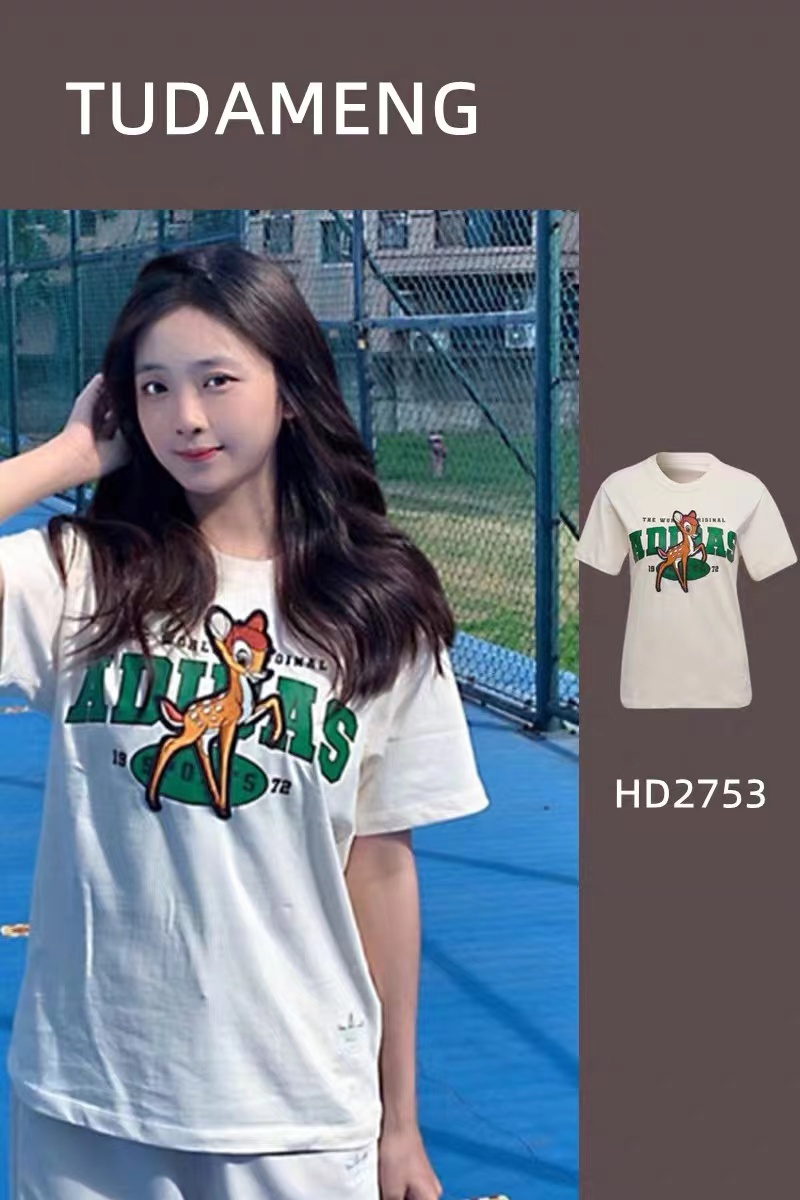 >>Adidas阿迪达斯短袖T恤女装三叶草小鹿斑比联名运动服上衣HD2753