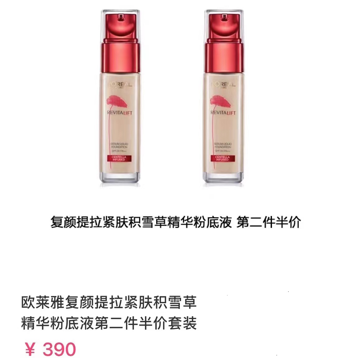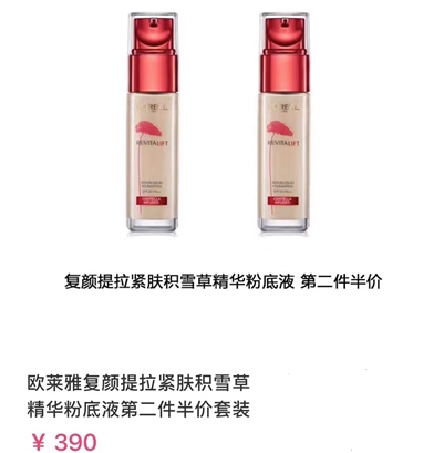 >>欧莱雅复颜提拉紧肤精华粉底液30ml*2瓶