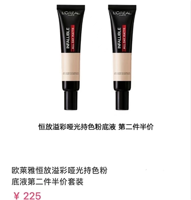 >>欧莱雅恒放溢彩特色哑光粉底液30ml*2瓶