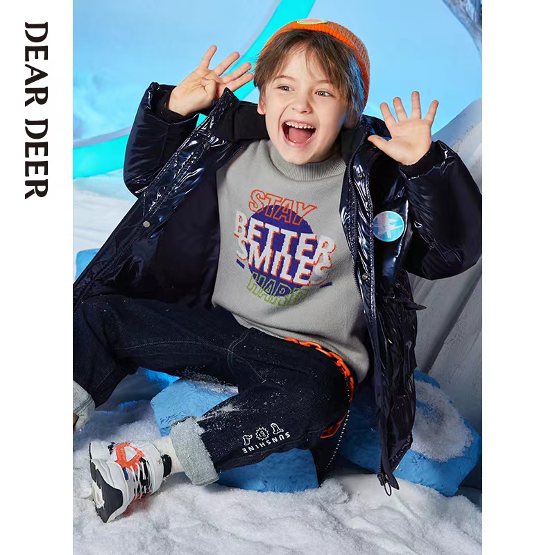 迪迪鹿鲨鱼皮连帽羽绒服