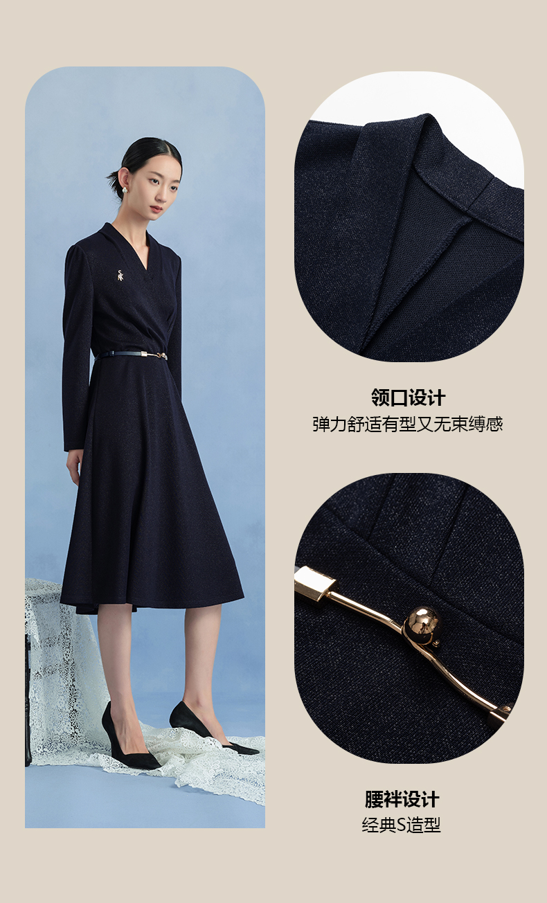 圣可尼2022秋季新品弹力亮丝连衣裙