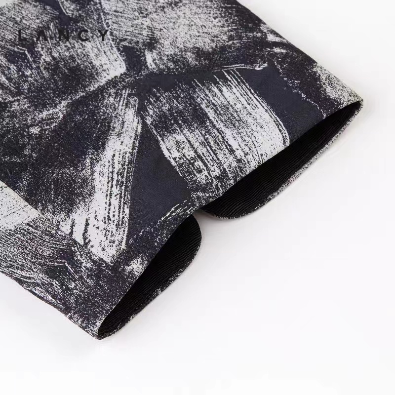LANCY/朗姿短袖连衣裙子女2022秋季新款印花收腰宴会气质高级裙子
