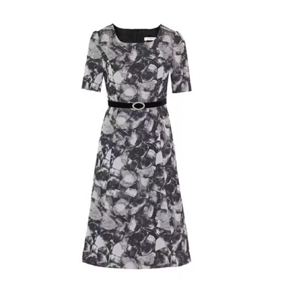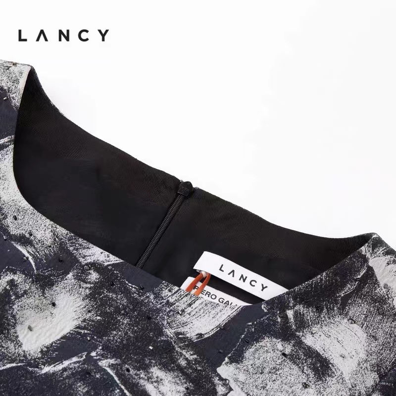 淑女装>>LANCY/朗姿短袖连衣裙子女2022秋季新款印花收腰宴会气质高级裙子