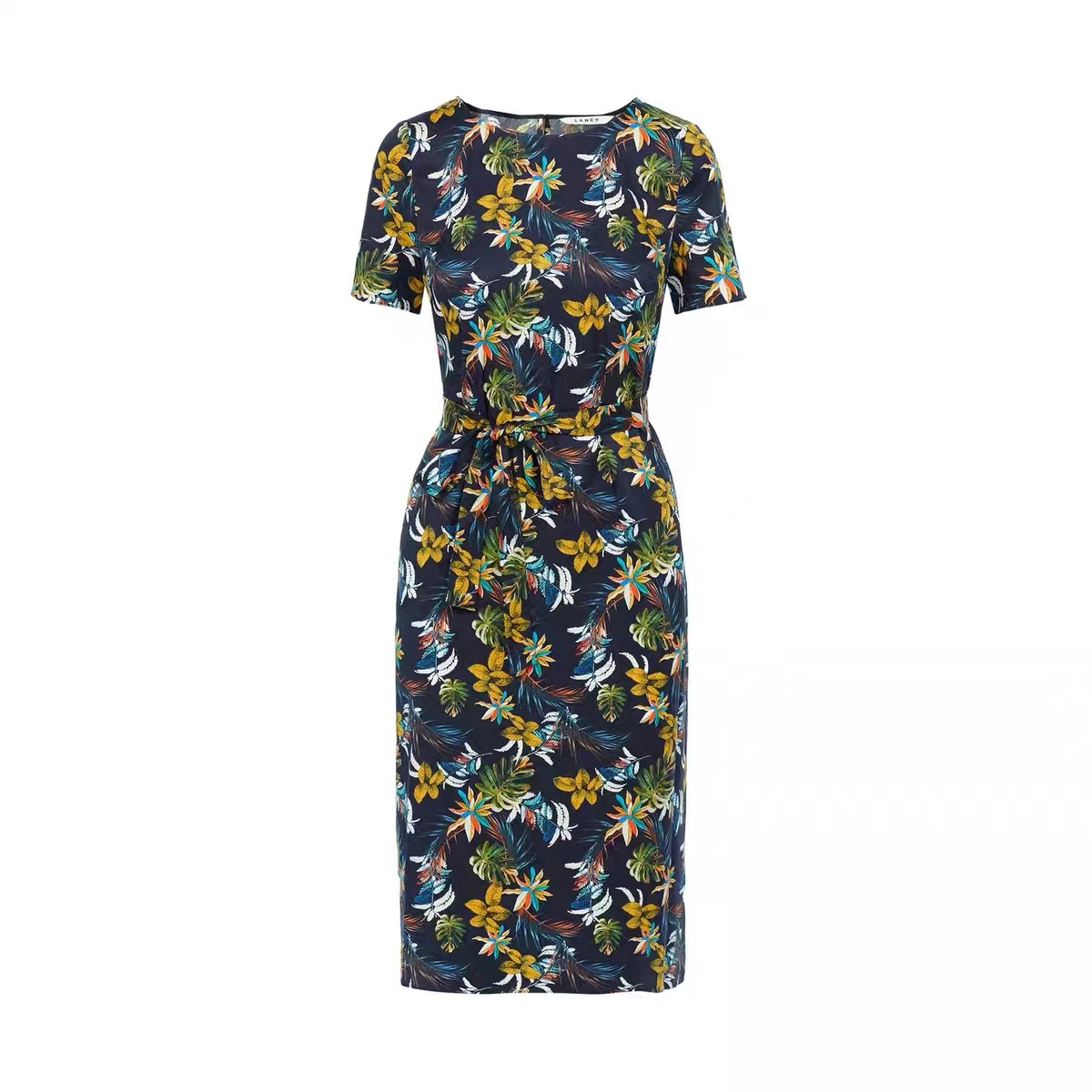淑女装>>LANCY/朗姿女2022新款短袖真丝印花收腰通勤连衣裙子商场同款
