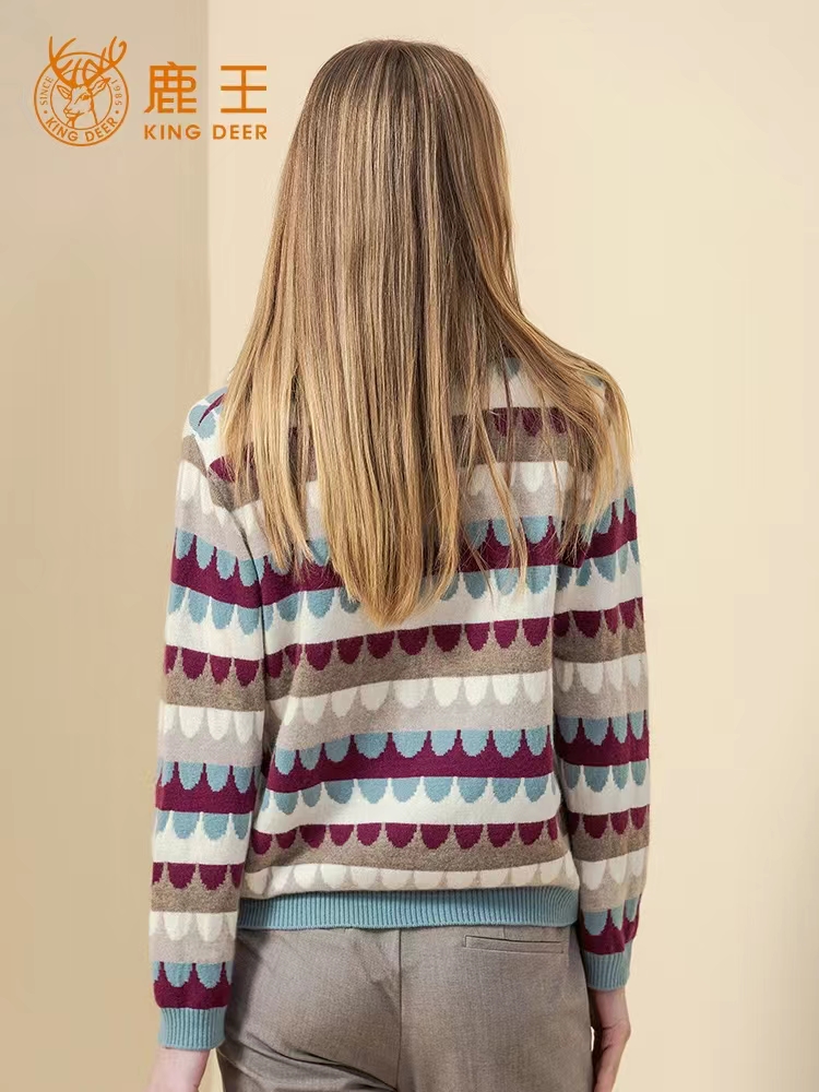 鹿王圆领提花女套衫