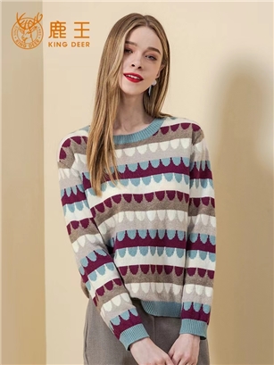 >>鹿王圆领提花女套衫