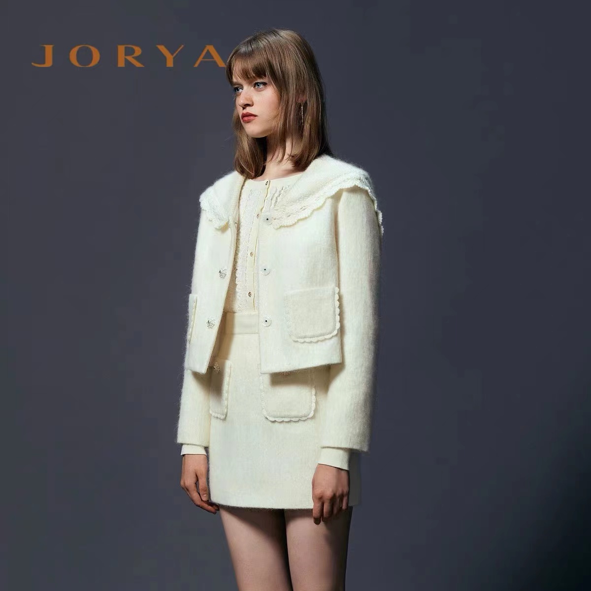 卓雅2022冬新款镂空勾花海军领单排扣短外套O162802B