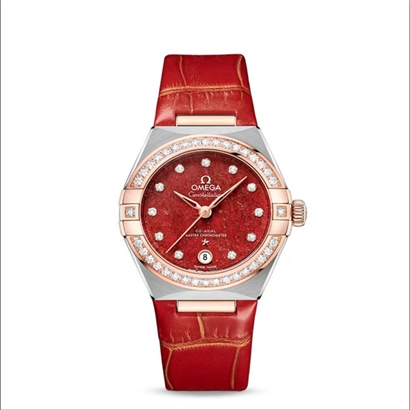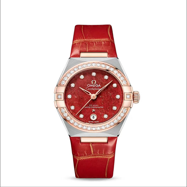 红色砂金石表盘就像一颗“红色星球”送给爱人,告诉他,你是我心中最耀眼的星辰,表盘与表圈共有47颗璀璨钻石镶嵌,举手投足间绽放灵动美态。