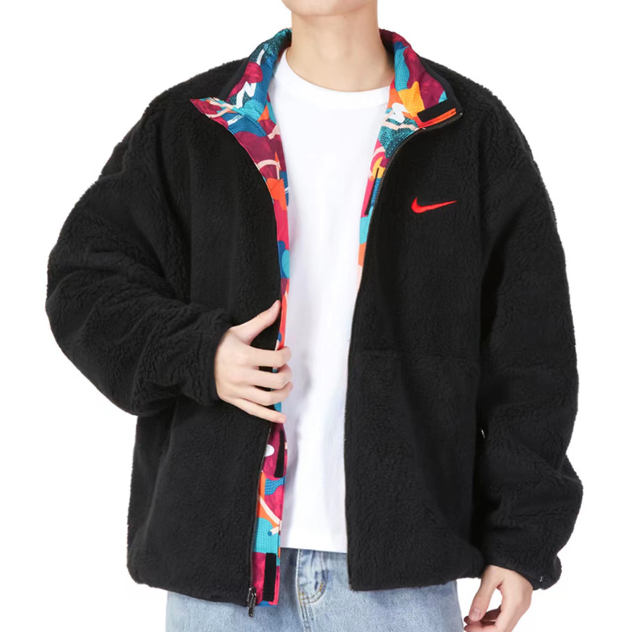 >>耐克外套男子2023新年款CNY双面穿摇粒绒夹克