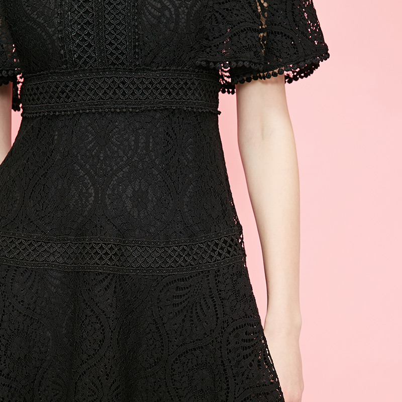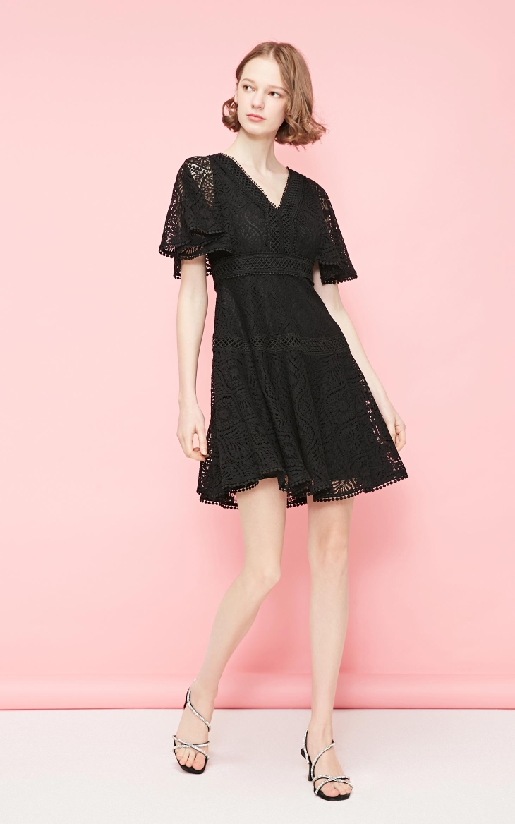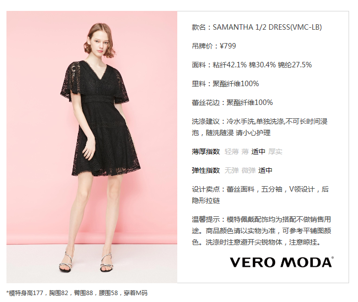 少女装>>Vero Moda春夏蕾丝V领小黑裙桔收腰显瘦气质连衣裙女|31936Z520