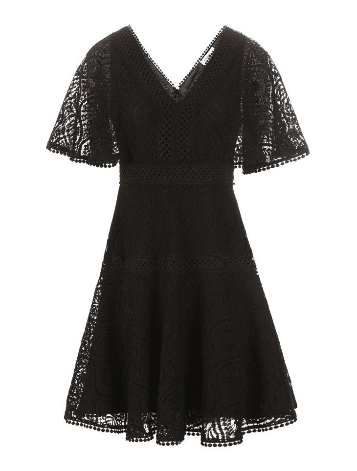 Vero Moda春夏蕾丝V领小黑裙桔收腰显瘦气质连衣裙女|31936Z520