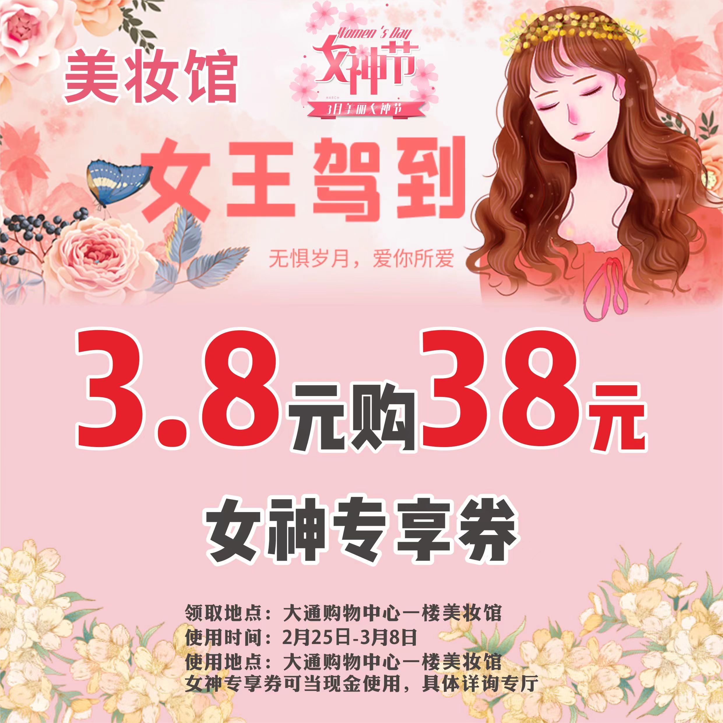 女神专享增值券3.8元增值38元