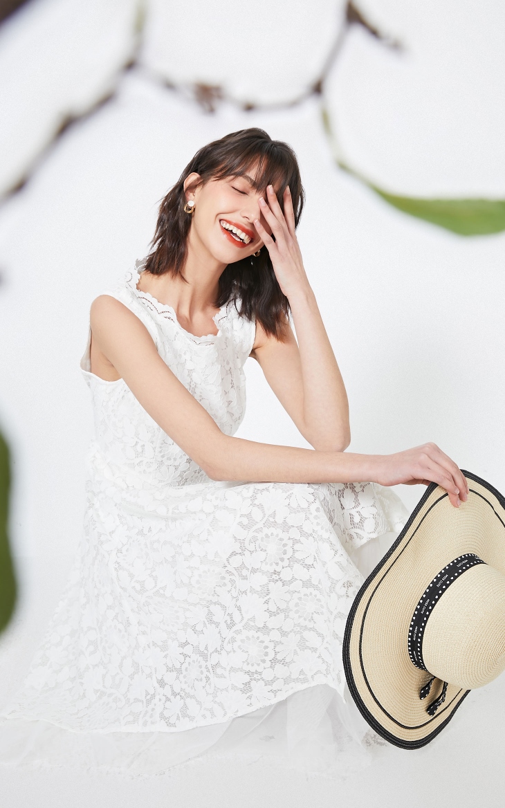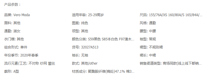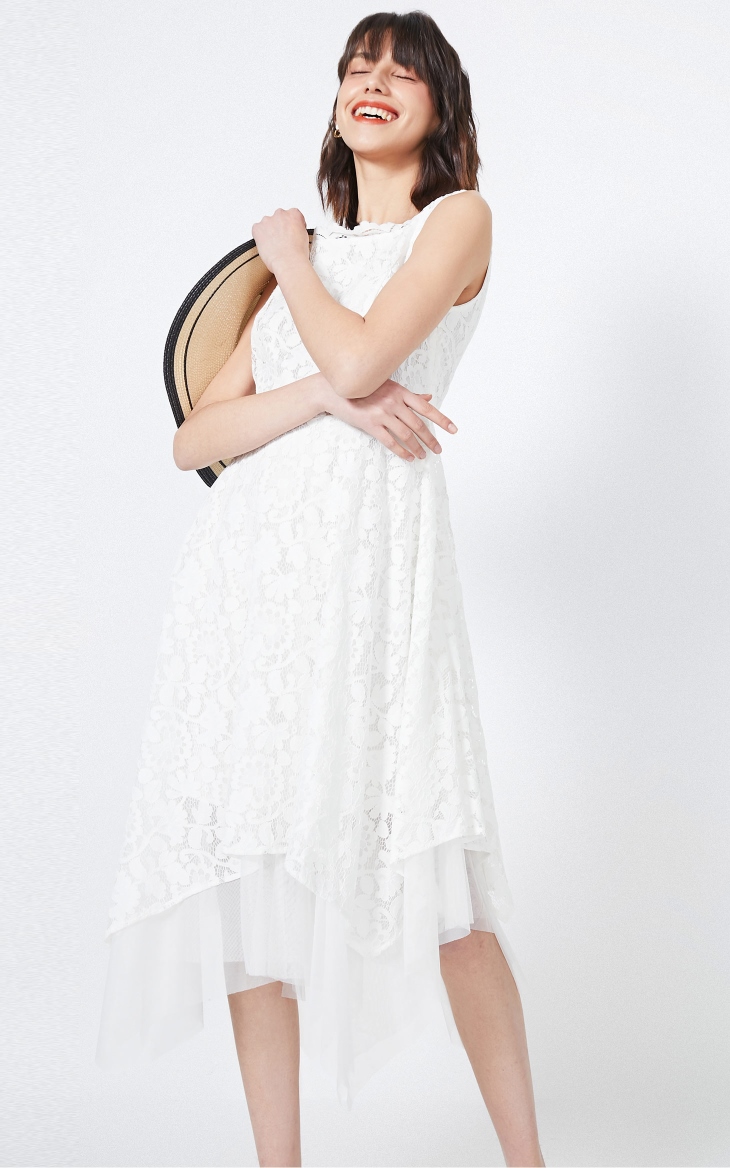 少女装>>Vero Moda2020春夏新款不规则网纱裙摆无袖蕾丝连衣裙|32027A513
