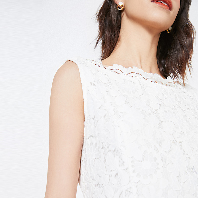 Vero Moda2020春夏新款不规则网纱裙摆无袖蕾丝连衣裙|32027A513