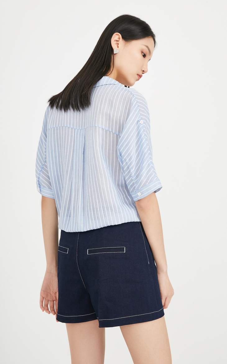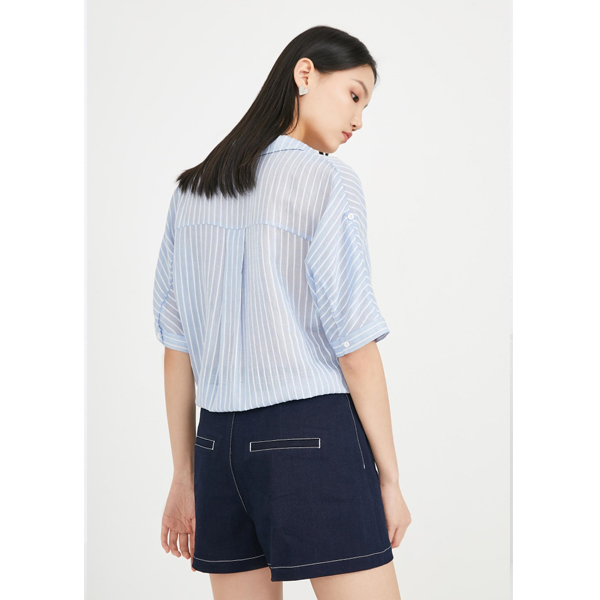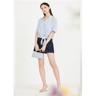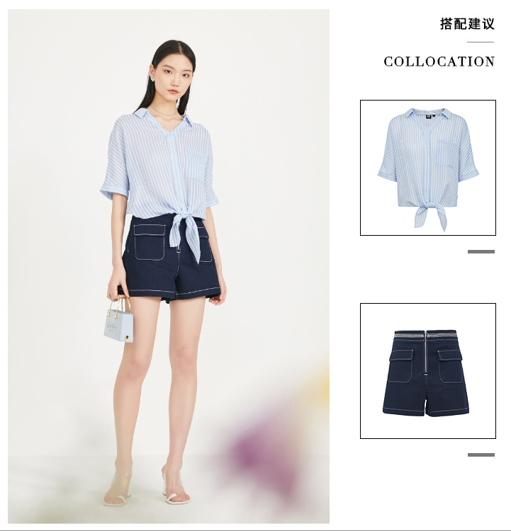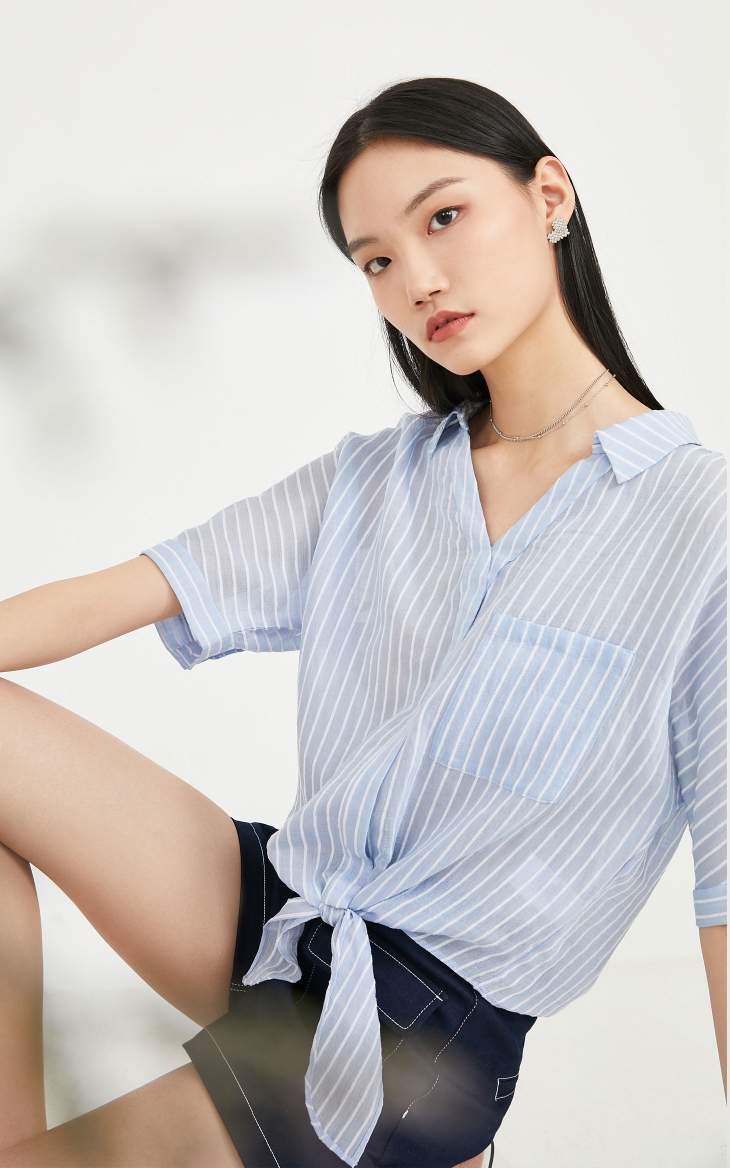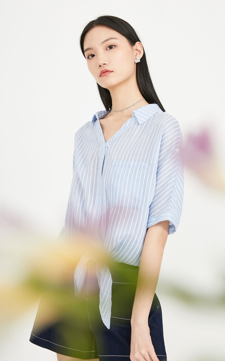 少女装>>Vero Moda2020春夏新款ins风条纹系带五分袖衬衫女|32026X516