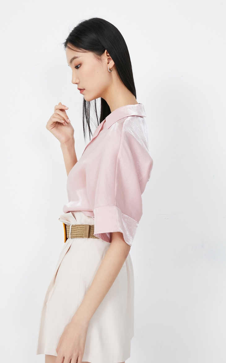 少女装>>Vero Moda2020春夏新款光泽感落肩宽松衬衫上衣|32026X513