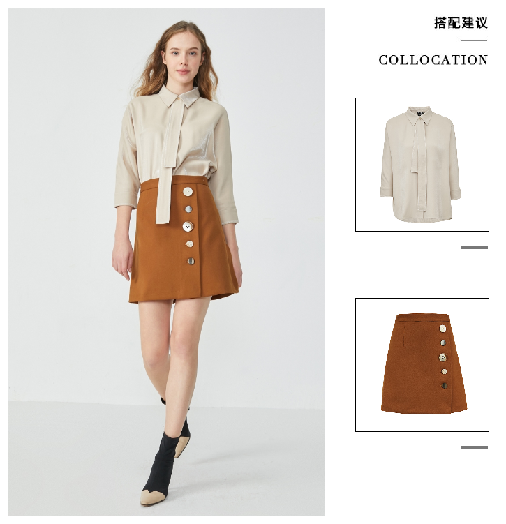 少女装>>Vero Moda2020春夏新款光泽面料领带装饰七分袖衬衫|320131528
