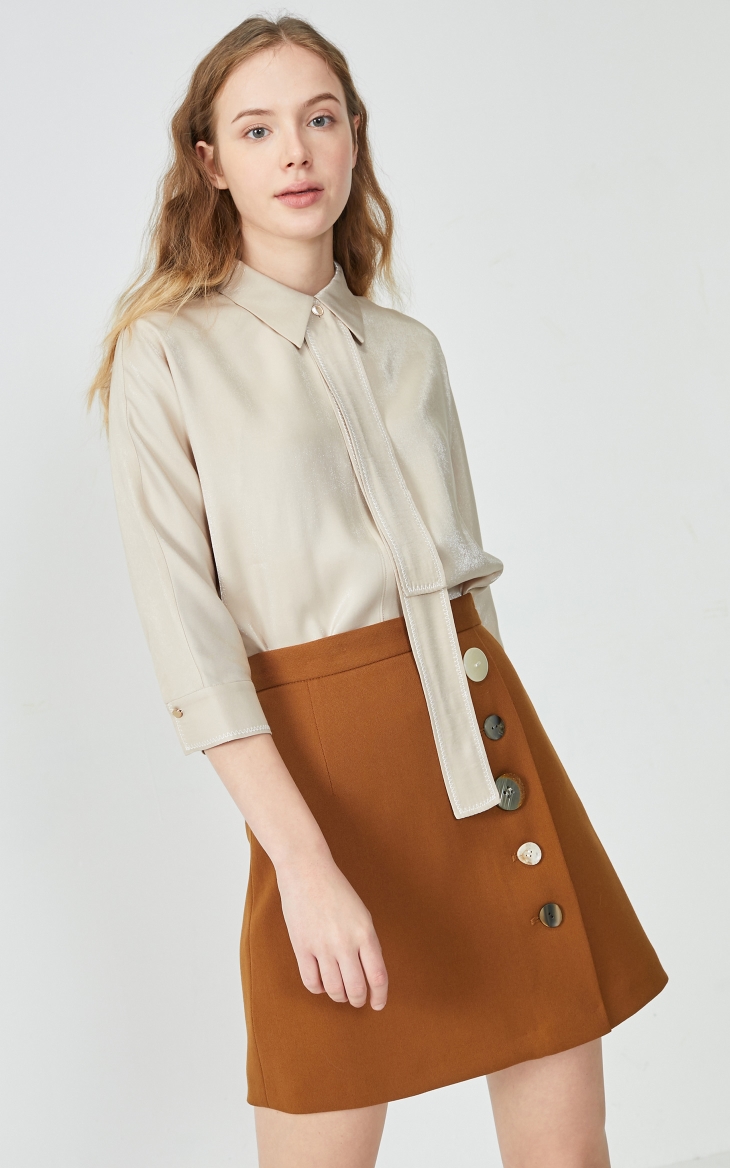 Vero Moda2020春夏新款光泽面料领带装饰七分袖衬衫|320131528