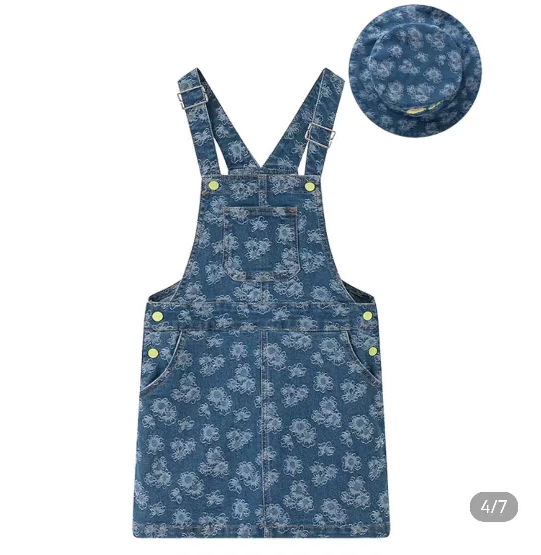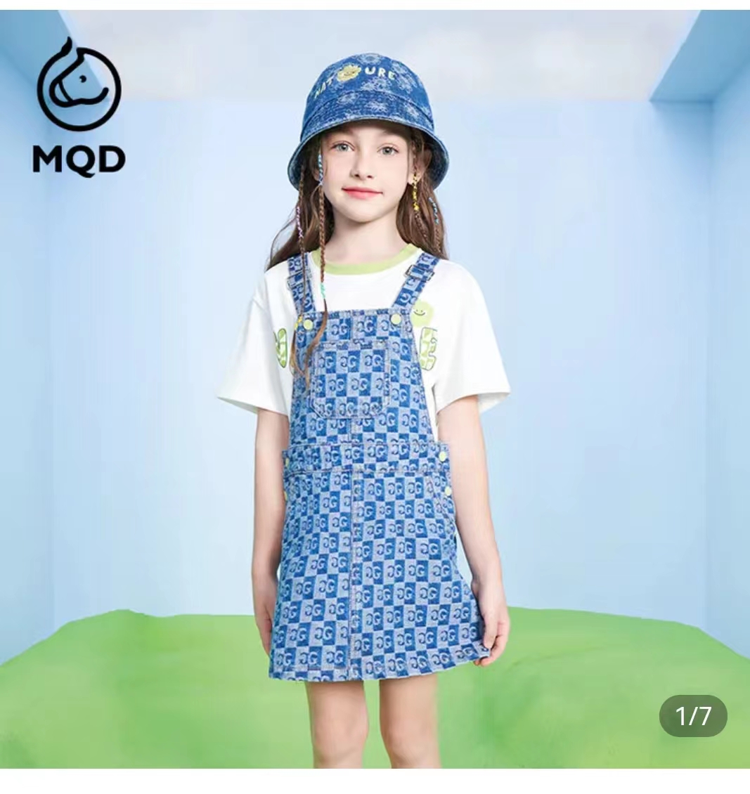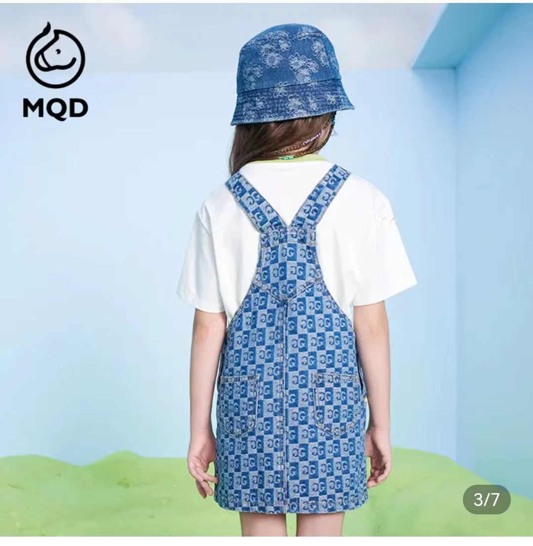 >>马骑顿女大童夏季满版提花时尚休闲背带裤连衣裙