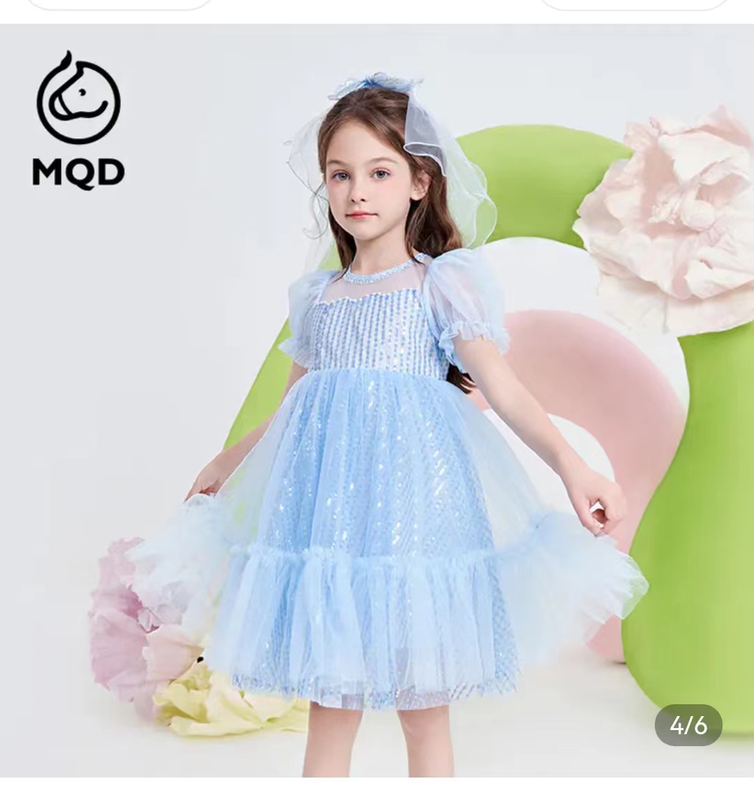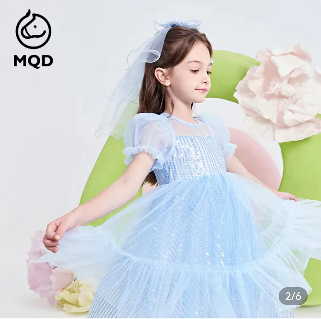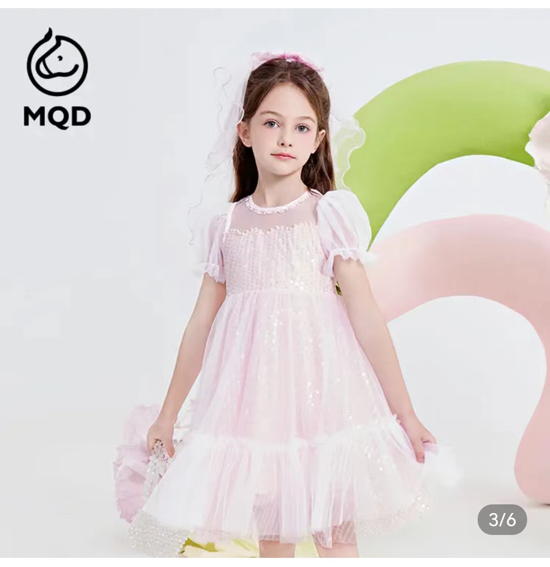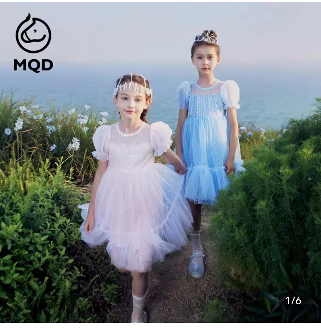 马骑顿女大童夏季公主风梦幻网纱休闲短袖连衣裙