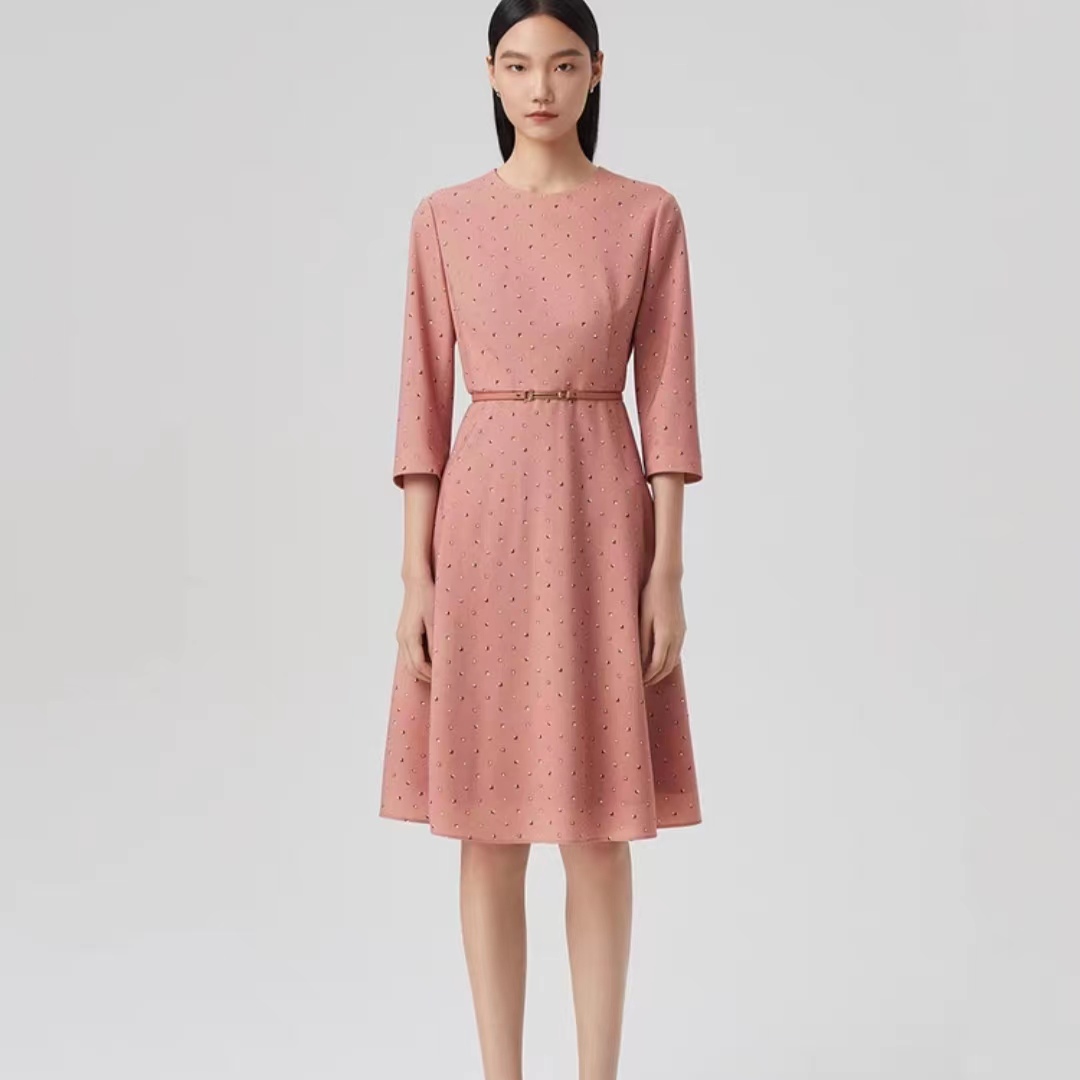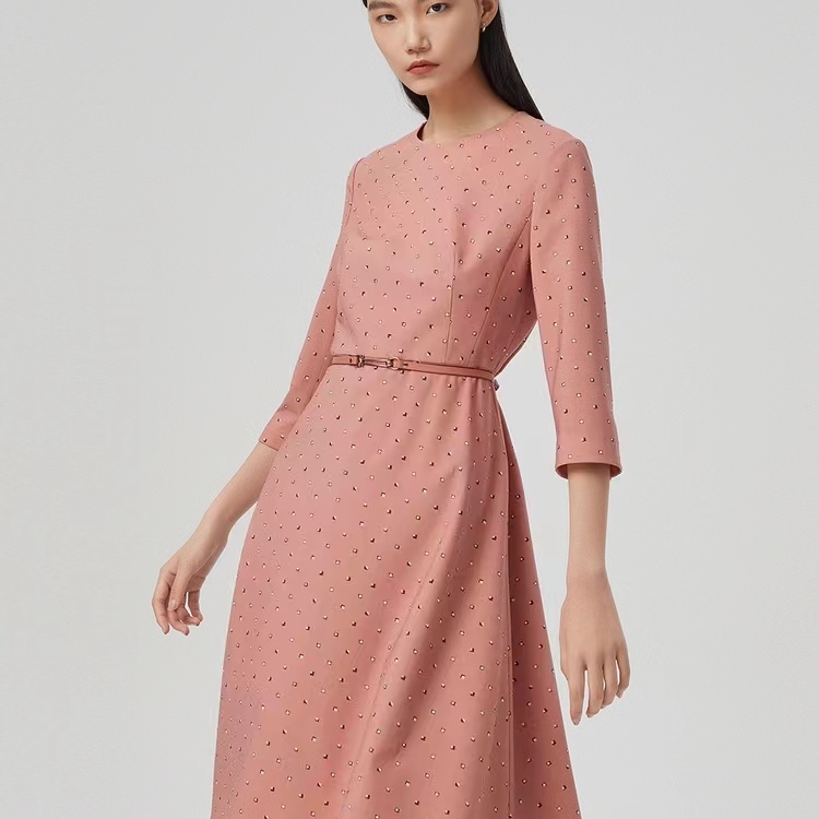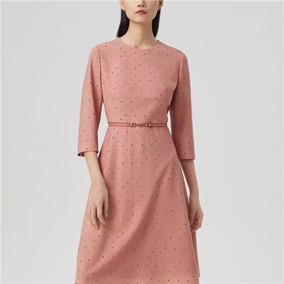 朗姿珊瑚粉气质通勤连衣裙